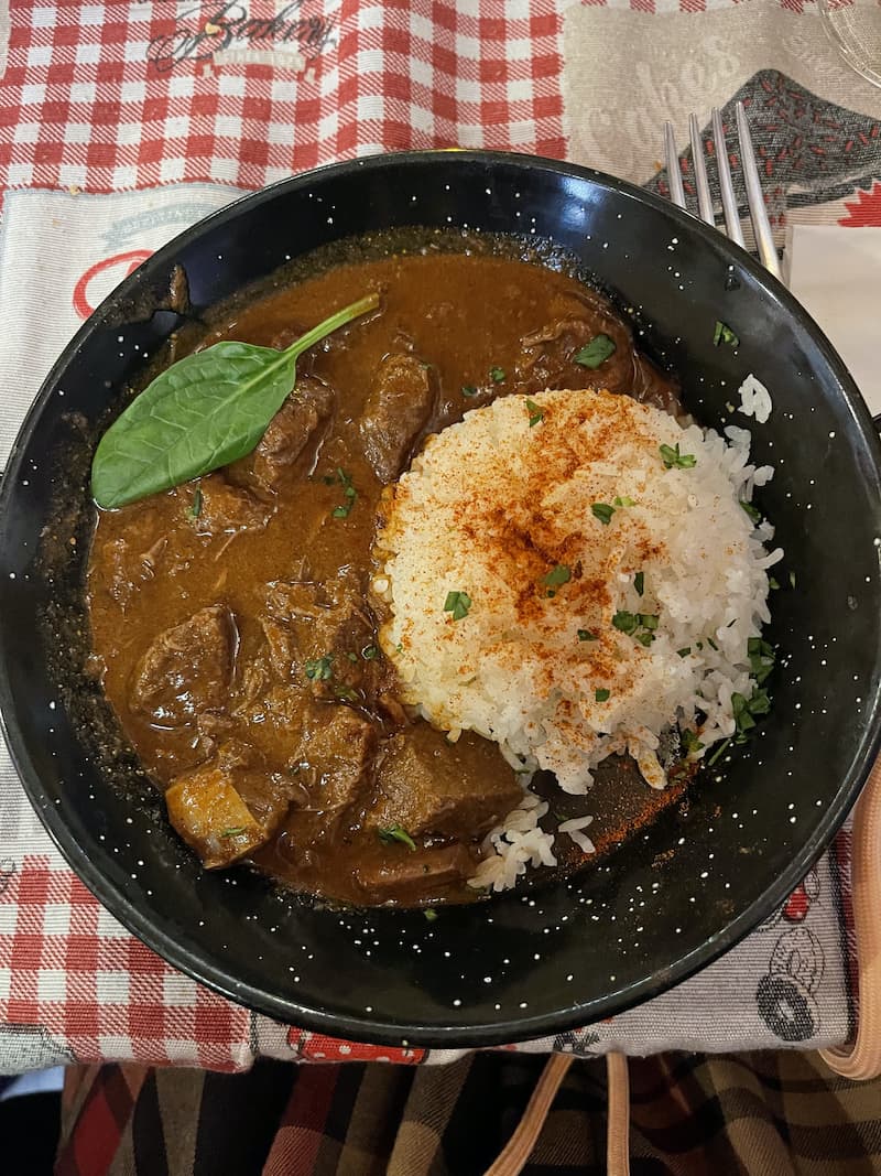 Il Drum Cafe Langosh & Gulash Bar si trova nel distretto VII, altro non è che il quartiere ebraico. Un locale che difficilmente dimenticherò perché, al Drum Cafe, ho assaggiato il miglior gulash di sempre. Un piatto dal sapore particolarmente speziato, la cui carne viene marinata nella paprika, che mi ha conquistato fin da subito. Dopo il gulash siamo passati al dolce: somloi galuska, una torta degli angeli addolcita con crema pasticcera e panna.